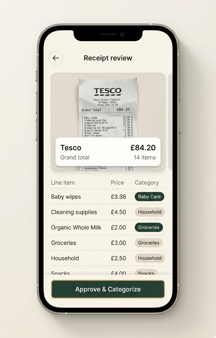 Capture receipts, share the same picture with your household, and ask better questions before money gets messy.